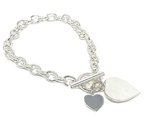 Braccialetto in argento Sterling con doppio ciondolo a forma di cuore e chiusura a olivetta con barra e anello.