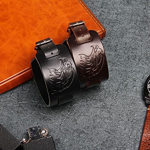 Braccialetto di cuoio nero Braccialetto di testa di gufo Stile punk Braccialetto largo del polsino del braccialetto del polsino del braccialetto per gli uomini e le donne