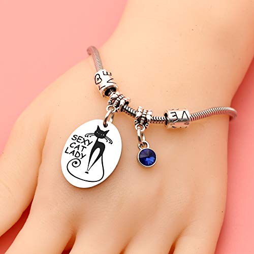 ❤ Design: una donna di gatto stampata sul ciondolo. Un braccialetto regalo speciale e bello per donne e ragazze.