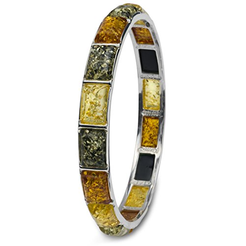 Noda - Braccialetto con elementi rettangolari in ambra multicolore e argento sterling, 20 cm