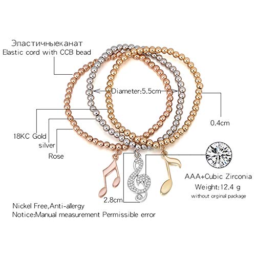 Braccialetto di fascino delle donne, braccialetto di allungamento braccialetto Note musicali Braccialetto di pendente braccialetto per ragazze con cristallo (3pcs /pack) (Mescola colore)