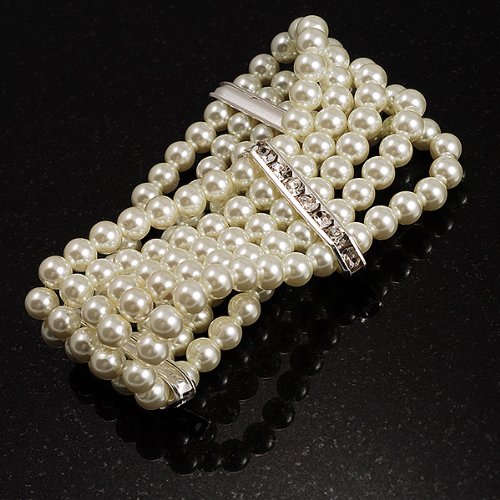 Braccialetto flessibile di perle a 5 giri con strass (Biancaneve)