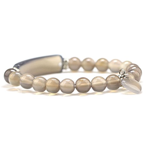 Braccialetto di gemme fatto a mano, lungo 18 cm, elastico, con ciondolo centrale a forma di cuore e sfere chakra Gray Agate