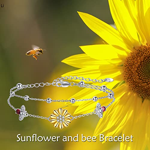 YFN Braccialetto Girasole Argento Sterling Bracciale Ape Gioielli You Are My Sunshine Regalo per Donne Bambina