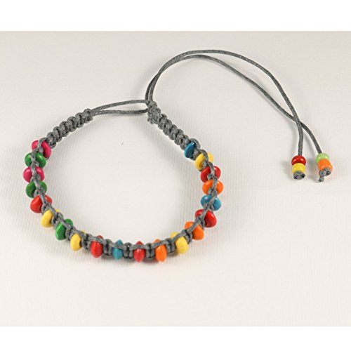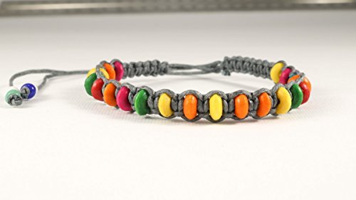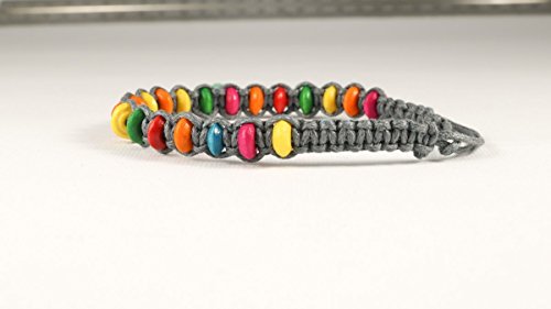 Braccialetto intrecciato Griggio con perline di legno colorate, ideale per l'amicizia o portafortuna