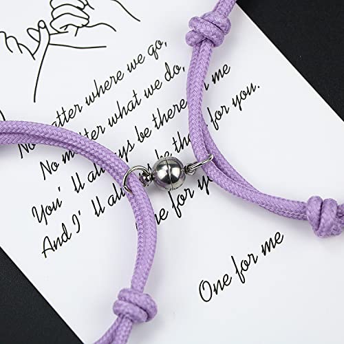 Braccialetto magnetico di attrazione reciproca con corda luminosa, bracciale regolabile per coppia, per fidanzato, fidanzata, sua, donna, uomo, amante di lui, la sua amicizia (Purple)