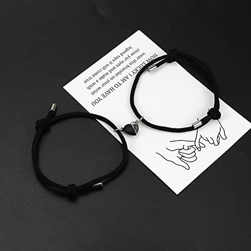 Braccialetto magnetico a forma di cuore Bracciale coordinato Bracciale Yin Yang con cordino regolabile per regali di San Valentino per fidanzati, fidanzati, migliori amici (Black-Black(Heart))