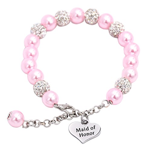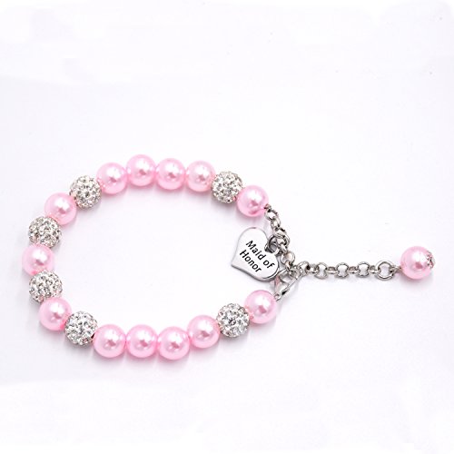 Braccialetto con perle per damigella d'onore, idea regalo, colore: rosa