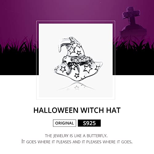 Braccialetto con perline a tema Halloween Cappello da strega con ciondolo fai da te in argento sterling 925 adatto a braccialetti Pandora, braccialetti europei con ciondoli