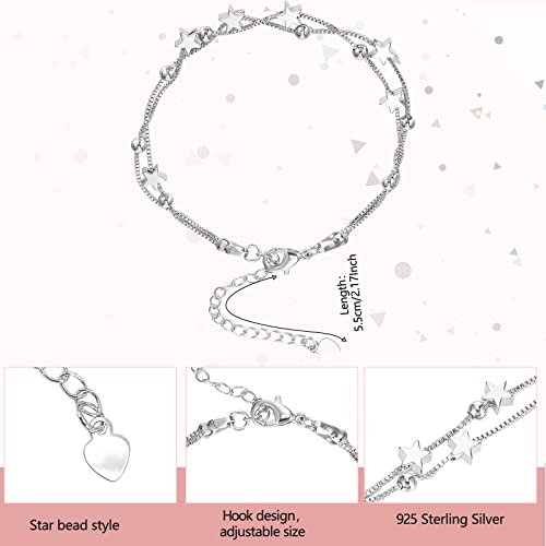Braccialetto Placcato Argento con Stella Bracciale in Argento Massiccio Bracciali da Donna a Doppio Strato Regolabile con Borsa per Regalo da Ragazza Signore Adolescenti
