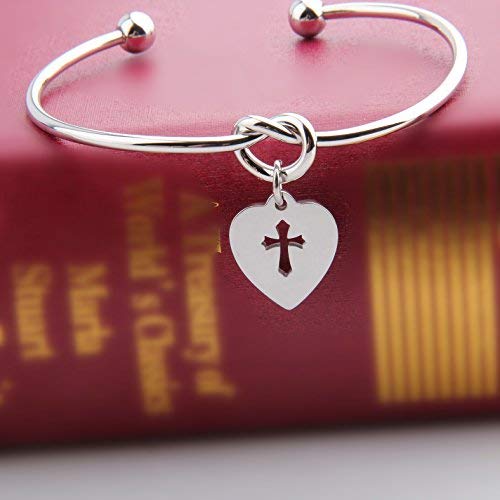 Braccialetto per la prima comunione, con ciondolo a forma di croce, con nodo d'amore, braccialetto religioso, regalo per battesimo e Acciaio inossidabile