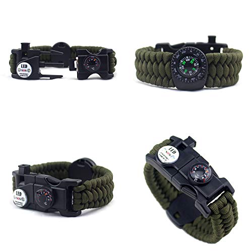 Paracord: il bracciale può essere smontato in una corda lunga 3,2 m con un diametro di 4 mm, e può sostenere fino a 249,5 kg, offrendo una migliore sicurezza quando in natura, è possibile utilizzarlo per fermare il sanguinamento, creare trappole, raggruppare tende temporanee, amache, appendere oggetti pesanti e molto altro ancora