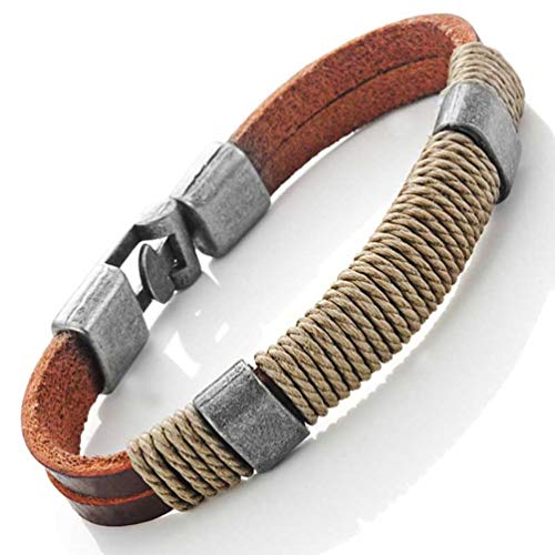 Braccialetto Unisex in Vera Pelle Marrone Scuro con Avvolgimento in Spago, 20 cm