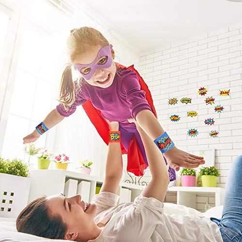 Ogni braccialetto da schiaffo di supereroe misura 21,6 cm, le decalcomanie per feste di supereroi sono da 5,1 a 10,2 cm, progettate per adolescenti, adulti, bambini, ragazze, adulti.