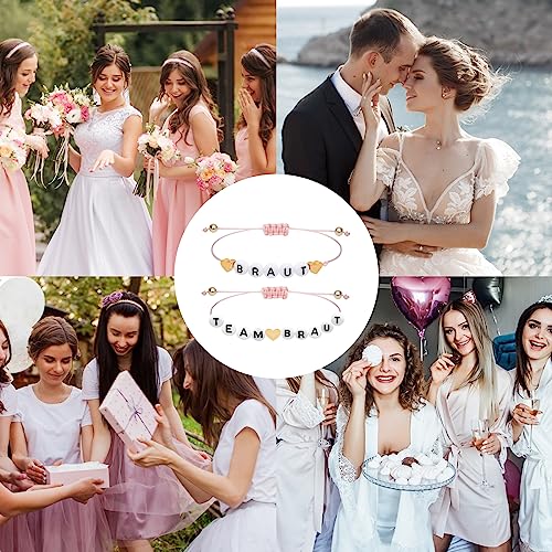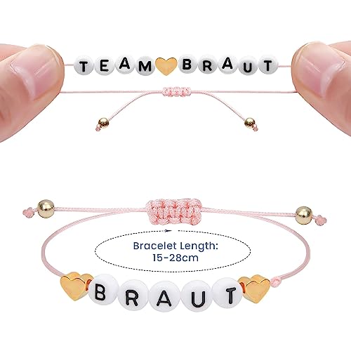 [Bracelet Bridesmaid Set Unique Design]: i braccialetti da sposa del nostro team sono realizzati con perline di lettere di alta qualità e cuori carini. Con la chiusura in pizzo intrecciato, il braccialetto può essere facilmente indossato e tolto e adattato alla tua taglia personale. Basta tirare le estremità e il braccialetto si adatterà perfettamente alla misura del tuo polso.