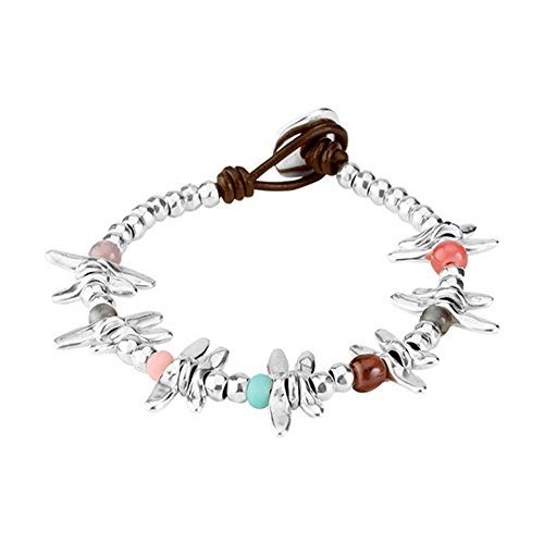 Bracciale singolo composto da più pezzi bagnati in argento, alcuni dei quali con forma a libellula e combinati con cristalli artigianali in tonalità pastello. Un gioiello da indossare ogni giorno e che dà un tocco romantico a tutti i tuoi look. Un design innovativo realizzato in Spagna da UNOde50 e 100% a mano.