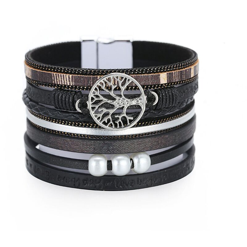 Avvolgere il braccialetto della Boemia,Rappresenta l'amore dell'infinito,Design multistrato in vera pelle,Comodo da indossare,Facile da mettere,nessun odore pungente.Chiusura magnetica super forte,nessuna preoccupazione che si stacchi,Albero della vita Avvolgere il braccialetto bohémien hippie Festa della mamma Regalo di conferma di Pasqua gioielli per le donne liquidazione Ragazze adolescenti Bellissimo pacchetto regalo Bracciale avvolgente con fibbia per la famiglia Porta una confezione regalo piuttosto nera e una scintillante sorpresa! ogni donna merita di avere un bel gioiello per farsi bella e bella.,Il