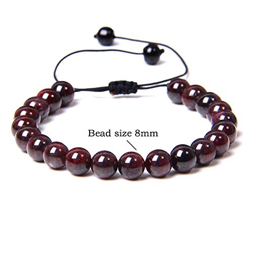 Bracciali Da In Pietre Naturali,Braccialetto Intrecciato Fatto A Mano Unisex Perline Di Pietra Rosso Granato Naturale Tessuto Regolabile Braccialetto Da Polso Moda Donna Uomo Moda Coppia Regalo Amico
