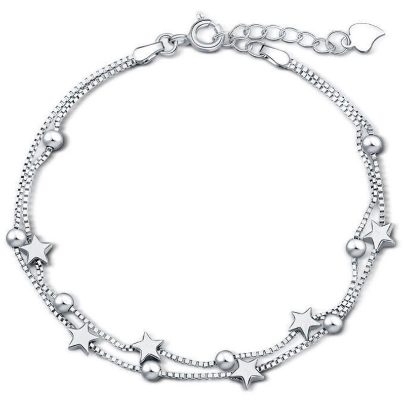 BRACCIALE A STELLE DA DONNA:Il classico braccialetto a stella eterna, con sei stelle e otto perline, dal design semplice ed elegante. È un regalo ideale per il tuo buon amico o qualcuno di speciale nella tua vita. DIMENSIONE DEL BRACCIALETTO IN ARGENTO: lunghezza della catena della scatola cm 17 cm (6,69'') + 4 cm (1,57''), la dimensione del cinturino può essere facilmente regolabile per una vestibilità perfetta. Adatto sia al polso di adulti che di bambini. BRACCIALI: Bracciale con catena a stella per donna Materiale senza piombo, anallergico, sicuro e salutare. Non è facile cambiare colore dopo il processo di ossidazione, lunga durata, scelta perfetta per l'uso quotidiano. REGALO PER DONNE E RAGAZZE: il design di questo braccialetto con stella in argento è elegante e classico, quindi lo farà stai benissimo nella maggior parte delle occasioni. Un regalo unico per San Valentino, festa della mamma, compleanno, laurea, pensionamento, festa della mamma, giorno del Ringraziamento