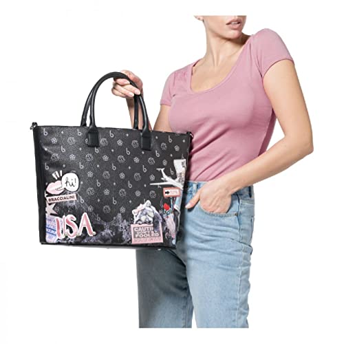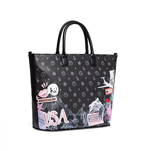 Braccialini Borsa linea cartoline grande con doppio manico corto e tracolla linea cartoline USA