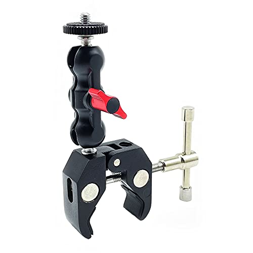 Realizzato in materiale in lega di alluminio di alta qualità, doppia testa a sfera multifunzione, dotata di vite per treppiede da 1/4 ", la direzione di ciascuna testa a sfera può essere regolata liberamente.