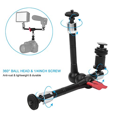 Braccio Magico con Morsetto per Fotocamere Reflex, Monitor Microfono, Stabilizzatore di Attrito Articolato da 11 Pollici Dotato di Testa a Sfera a 360°, Vite da 1/4 di Pollice e Attacco per Pattino Fr