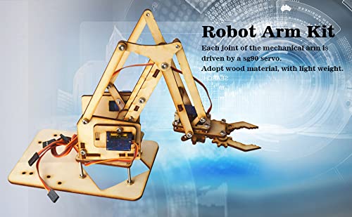 Braccio meccanico robotico, 4 DOF Braccio meccanico robotico in legno Kit braccio robotico, studenti universitari per Raspberry Pi SNAM1500