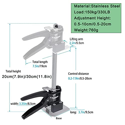 Eccellente capacità: 1,45/0,8 kg/pz. Altezza: 7,9/30 cm. Intervallo di sollevamento: 0,19-3,94/8 pollici. Base: 9,3 x 8,5 cm. Questo braccio di risparmio di manodopera è facile da trasportare. Lavoro a due uomini di una persona.