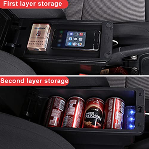Bracciolo auto compatibile con Golf 6 Mk6 2008-2013 Jetta Mk5 2006-2011 Vento Wagon 2009 2010 Consolle centrale a doppio strato con 3 porte USB di ricarica Cuciture nere