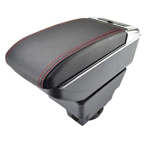 Bracciolo in pelle nera, doppio strato, per console centrale dell'auto, con vano portaoggetti