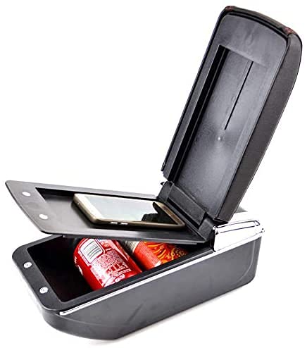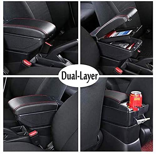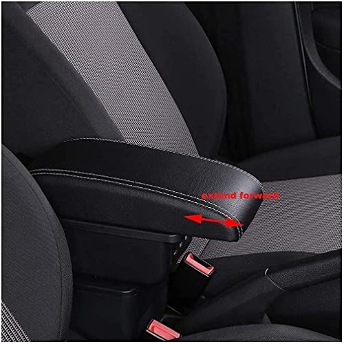 Bracciolo In Pelle Nera per Skoda Fabia 3 2015-2019, Nero Doppio Strato Bracciolo Auto Box Copertura Corrimano Box Copertura, Con Vano Portaoggetti
