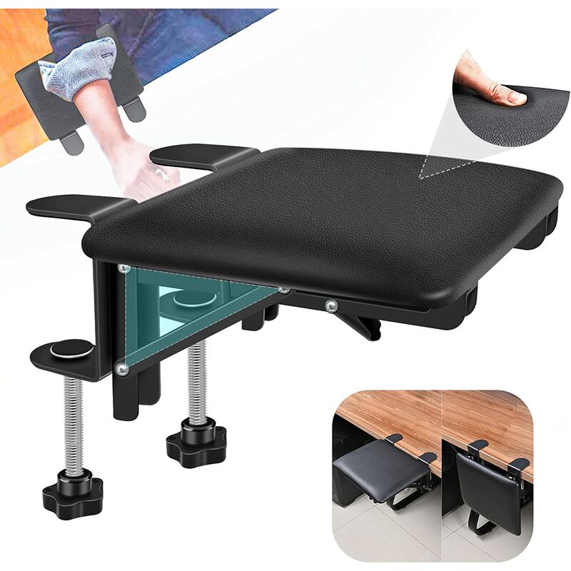 Braccioli da scrivania ergonomici - I braccioli da scrivania imbottiti possono essere fissati a scrivanie fino a 8 cm di spessore, fornendo un supporto confortevole per il comfort di tutto il giorno. ! Il supporto del bracciolo riduce la tensione sulle braccia ed elimina la tensione muscolare del collo, delle braccia e delle spalle. I braccioli prevengono la miopia e la spondilosi cervicale. Adotta una postura seduta sana. 【Supporto stabile】 Supporto in acciaio inossidabile e lega di alluminio, robusto e resistente. Il supporto del braccio da tavolo può sostenere fino a 13 kg. L'estensione della scrivania deve essere solo serrata a mano ed entrambe le staffe sono imbottite per proteggere la scrivania da graffi e graffi. Braccioli di alta qualità, doppia chiusura a scatto sul tavolo, che consente al prodotto di adattarsi più saldamente al tavolo. 【Estensione ergonomica della scrivania】 Il supporto per gomito da scrivania portatile può essere posizionato dove serve. Questa estensione