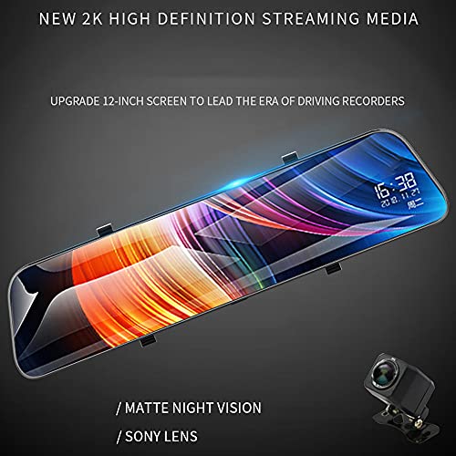 Braceletlxy Specchietto retrovisore del Dash Dash Cam 2K, 12 Pollici Touch Screen Stream Media Dual Lens Driving Recorder Camera, Parcheggio Posteriore Telecamere di retromarcia