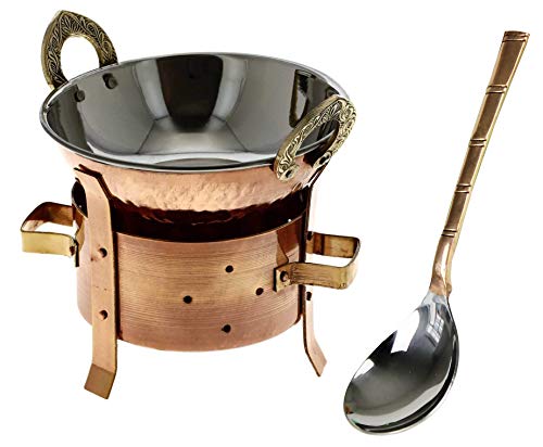 Braciere originale Karahi Angithi, indiano, formato da vassoio da portata, braciere e cucchiaio.