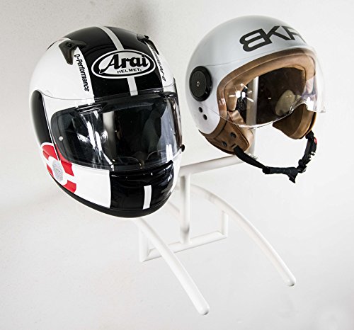 THE LAB Bracky for Two Porta Casco Moto | Modello Doppio Casco e Doppia Giacca | Supporto da Parete o da Muro per la casa o Come Idea Regalo | Gancio Colore Bianco