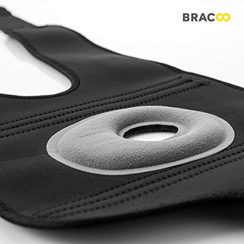 Bracoo KB30 Tutore Ginocchio. Stabilizzatore Extra Forte con 4 Stecche. Fascia Larga Foro Rotuleo e Anello Gel di Silicone. Ideale Riabilitazione Sostegno Articolazioni. Ginocchiera Singola.