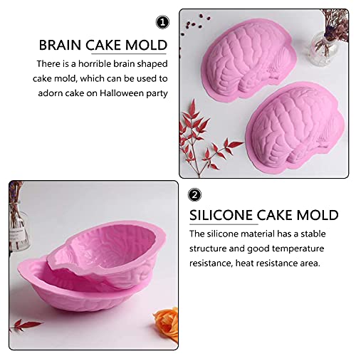 Brain Pudding Silicone Mould Halloween Cake Pan Baking Mold Kitchen Baking Decoration Tool Human Brain Shape Pan Silicone Mould Halloween Cake Pudding Jelly 3D Heart Brain Fondant Cake Chocolate