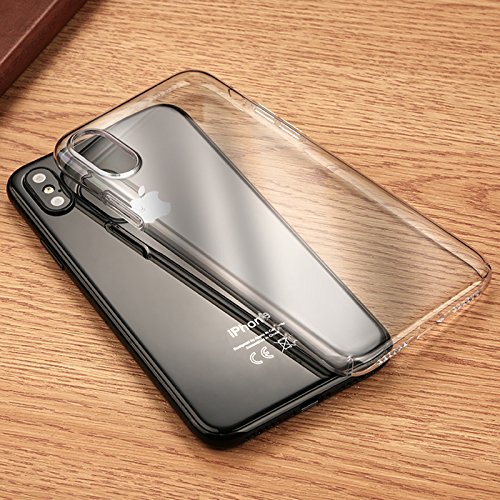 BrainWizz - Custodia Rigida per Apple iPhone X, 100% Trasparente, Ultra Sottile, con Sistema di Assorbimento degli Urti, AntiGraffio