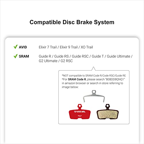 Top Brake pastiglie freni a disco per AVID Elixar 7 Trail/Elixir 9 Trail/XO Trail SRAM G2,Guide R/RS/RSC Ultimate (Performance - Rosso)