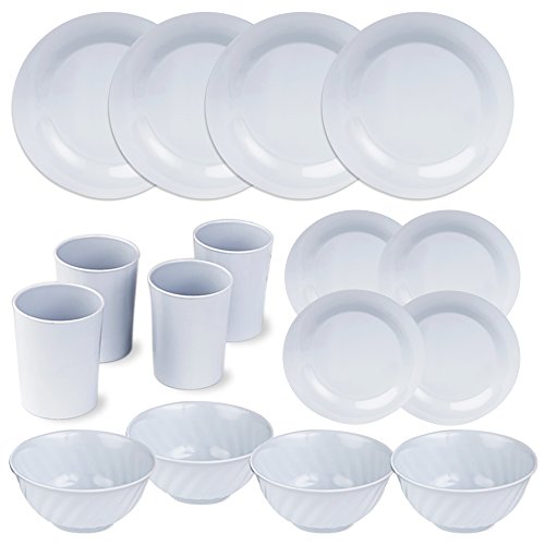 Caratteristiche - Il nostro set da 16 pezzi è ottimo per viaggi e trasporti, contiene in totale 4 piatti da 15 cm, 4 piatti da 22, 4 tazze e 4 ciotole. Realizzati in melamina leggera, è ideale per viaggi in famiglia o grandi gruppi.