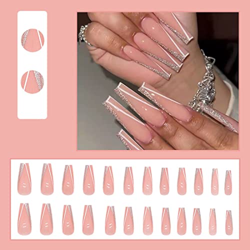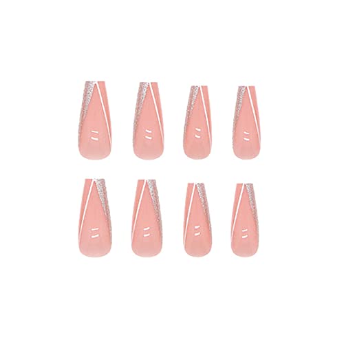 Bramian 24pcs francese bara Bling premere sulle unghie rosa lungo falso unghie bastone su unghie per le donne, 1.0 unità