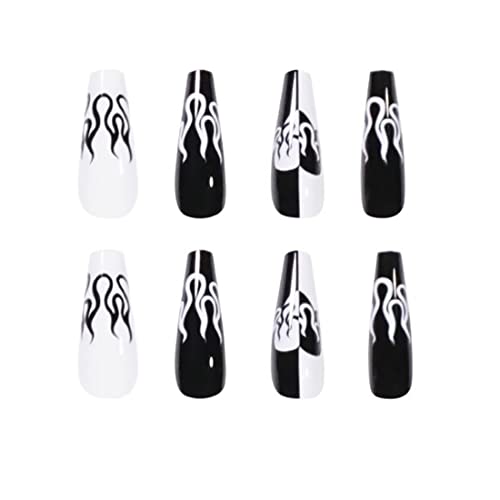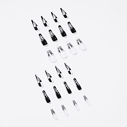 Bramian 24pcs serpente stampa sulle unghie nero farfalla cristallo fiamma lucido unghie finte copertura completa unghie finte bastone sulle unghie per le donne (C)