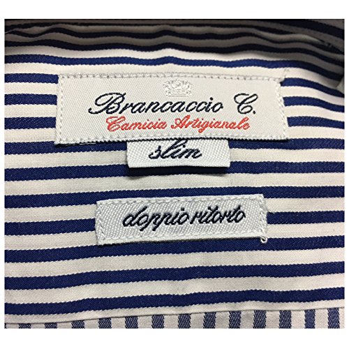 BRANCACCIO Camicia Uomo Riga Blu/Bianco Manica Lunga 100% Cotone Doppio Ritorto (M - 40-15 3/4)
