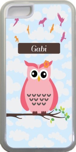 Gabi Name - cute Pink Owl on Branch with Personalized Name design iPhone 5 C case cover (Clear rubber with bumper Protection) for Apple iPhone 5 C Sell on Zeng case