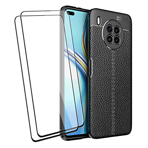 BRAND SET Cover per Huawei Nova 8i Soft Rubber Protettiva Custodia con 2 Pellicola Vetro Temperato, [Anti Graffio] [Antiurto] Silicone Cover Case per Huawei Nova 8i(Nero)