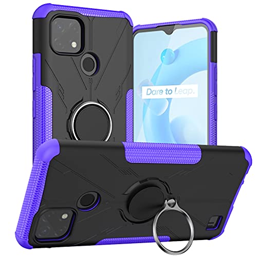 BRAND SET Custodia per Realme C21/C20 Anello, PC Hard Phone Case + Morbido Shell TPU, 360 Girevole Regolabile Ring Armor Bumper Cover per Realme C21/C20-Viola