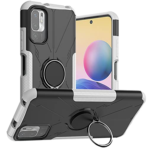 BRAND SET Custodia per Xiaomi Redmi Note 10 5G Anello, PC Hard Phone Case + Morbido Shell TPU, 360 Girevole Regolabile Ring Armor Bumper Cover per Xiaomi Redmi Note 10 5G-Bianca