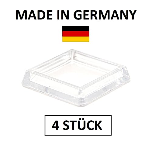 K.D.J. Brand Pattini Feltrini Pellicole Protettivi Tappetini Capertura Cappuccio per Gambe delle sedie, Tavole, mobilia, Transparente, 50 x 50 mm interiormentemente - 4 Pezzi - Made in Germany
