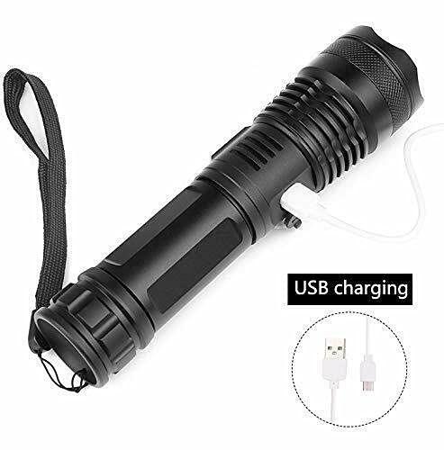 None Brand Telescopic Zoom Waterproof Camping Flashlight, 90000 lumens USB rechargeable hunting most powerful led flashlight