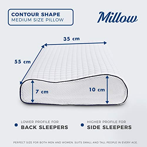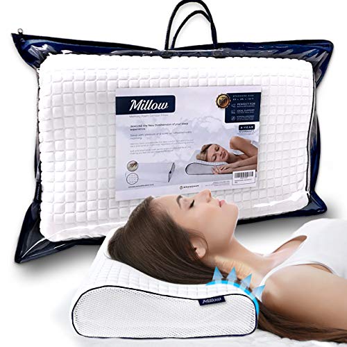 Brandman Store Millow - Cuscino Sagomato in Memory Foam, Supporto per Collo e Colonna vertebrale, Cuscino Ortopedico per Sollievo dal Dolore, con Fodera Lavabile, Misura Standard 55 x 35 cm